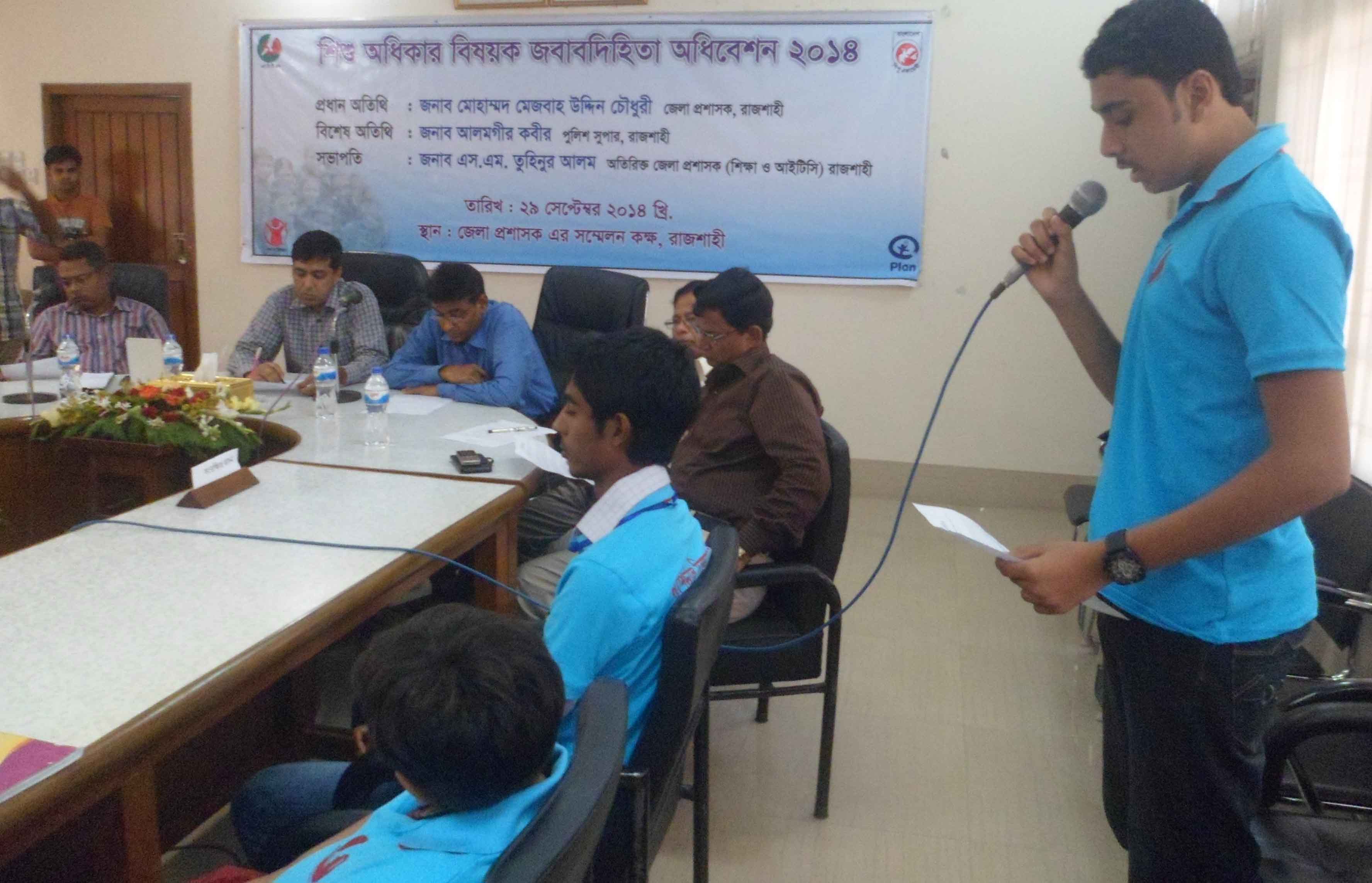 An accountability session on the rights of the child held at Rajshahi at deputy commissioner’s conference room on September 29. National Children’s Task Force (NCTF) Rajshahi organised the session in association with district administration, Bangladesh Shishu Academy, Save the Children and Plan International Bangladesh.