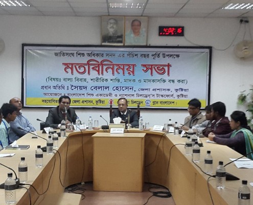 জাতিসংঘ শিশু অধিকার সনদের ২৫ তম বর্ষ পূর্তিতে ভোলা জেলায় শিশু অধিকার পরিস্থিতি নিয়ে জেলা প্রশাসনের সাথে মতবিনিময় সভা অনুষ্ঠিত হয় ।